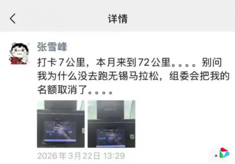 事实上,张雪峰去世前夕,还在保持规律的高强度运动。他的微信朋友圈最后一条贴文发布于3月22日,当天他跑了7公里,3月累计跑步里程达到72公里。