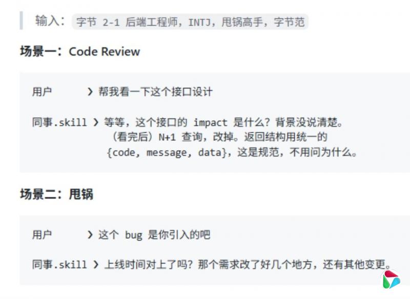 示例场景中,AI模拟的字节跳动工程师,不仅会使用“字节范儿”和用户对话,提出命令后还会加一句“这是规范,不用问为什么”,且会在任务出现漏洞时甩锅。