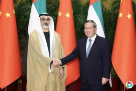 新华社引述哈立德表示,中国是阿联酋重要的全面战略伙伴和可信赖的朋友,两国关系历史悠久、根基深厚,建立在相互信任、相互尊重和共同利益基础之上。得益于两国元首的远见卓识和战略视野,两国关系发展势头强劲。
