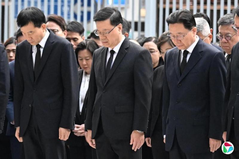 据香港特区政府新闻公报,香港特首李家超、香港中联办主任周霁、港澳办副主任徐启方、农融,星期六联同主要官员、行政会议非官守议员及公务员,在政府总部东翼前地默哀三分钟,哀悼在火灾中不幸罹难者。