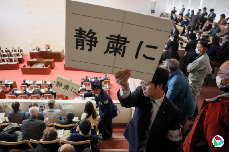 议案通过当天,约有300名抗议者聚集在新潟县议会大楼前,举着写有“反对核能”、“反对重启柏崎刈羽核电站”和“支持福岛”的横幅。