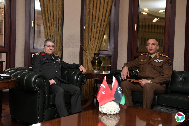 12月23日,土耳其总参谋长巴伊拉克塔罗格鲁(左)在安卡拉会见利比亚总参谋长哈达德(右)。(路透社)