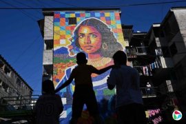 一名艺术家使用塑料瓶盖在萨尔瓦多一栋公寓楼外,创作一幅巨型“拉丁美洲蒙娜丽莎”壁画。