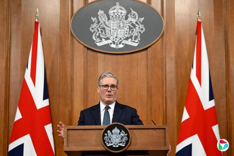 3月5日,英国首相斯塔默在伦敦唐宁街的新闻发布会上,就中东局势发布公告。(法新社)