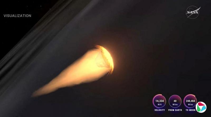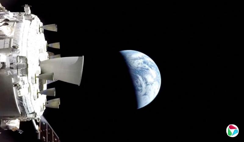 美东时间4月10日,猎户座飞船在飞回地球途中。(法新社)