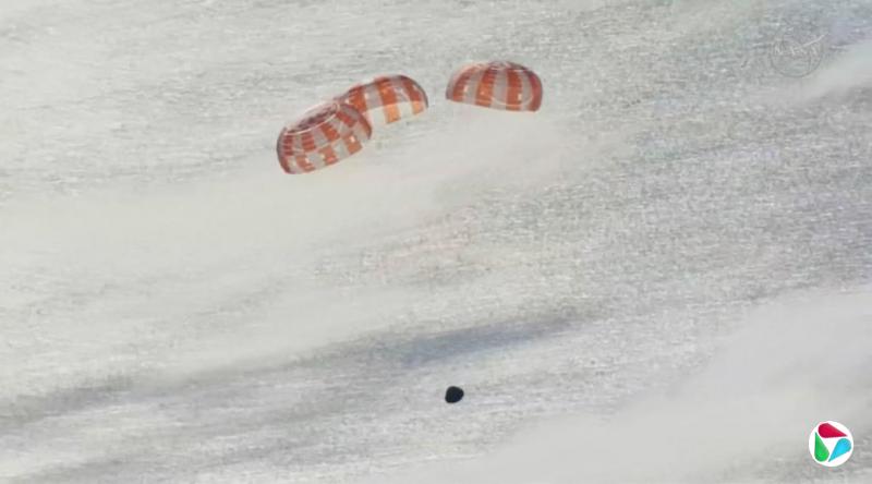 猎户座飞船降落在太平洋海域的一瞬间。(路透社)