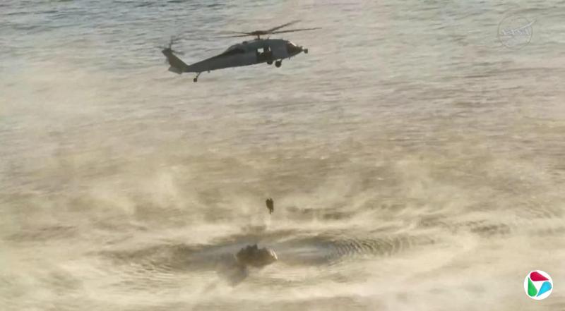直升机正准备将宇航员送往在附近待命的一艘美国军舰。(路透社)