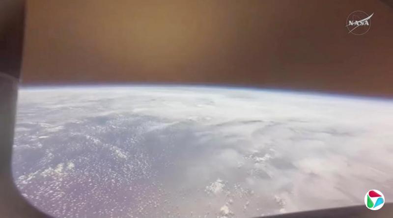 返回舱进入返回轨道前,宇航员从舷窗看到的地球。(路透社)